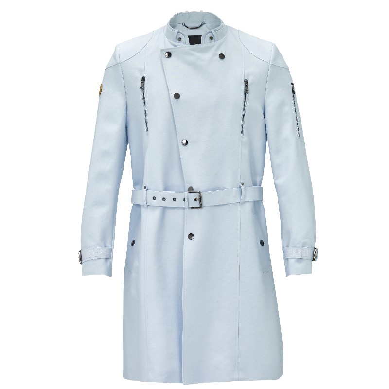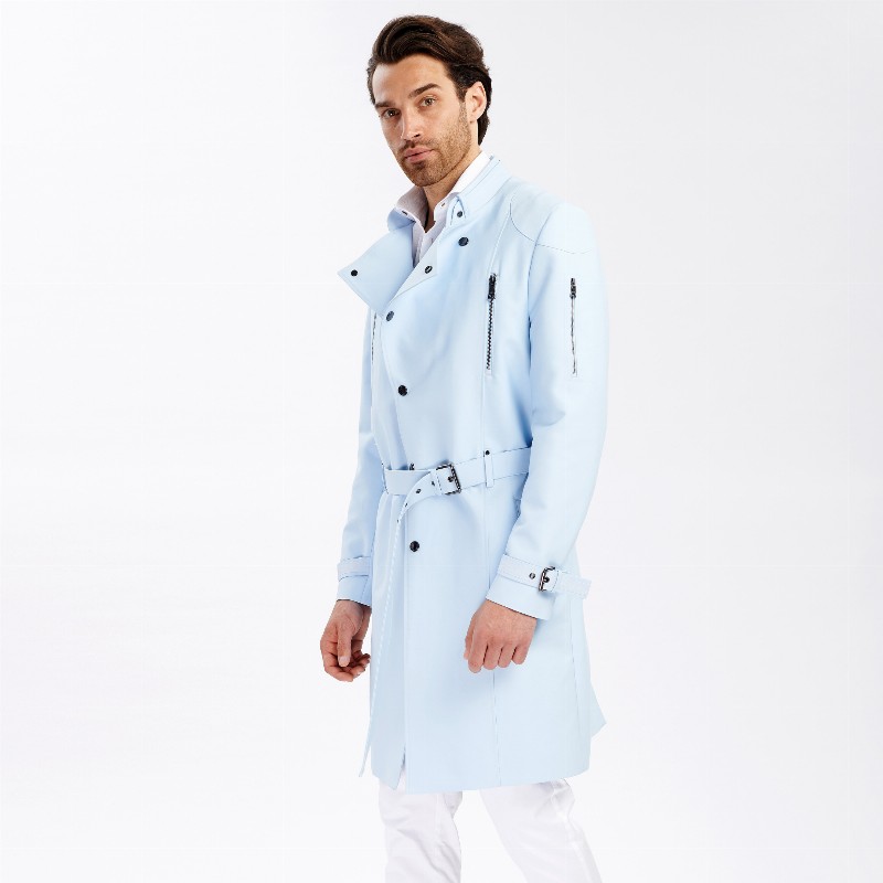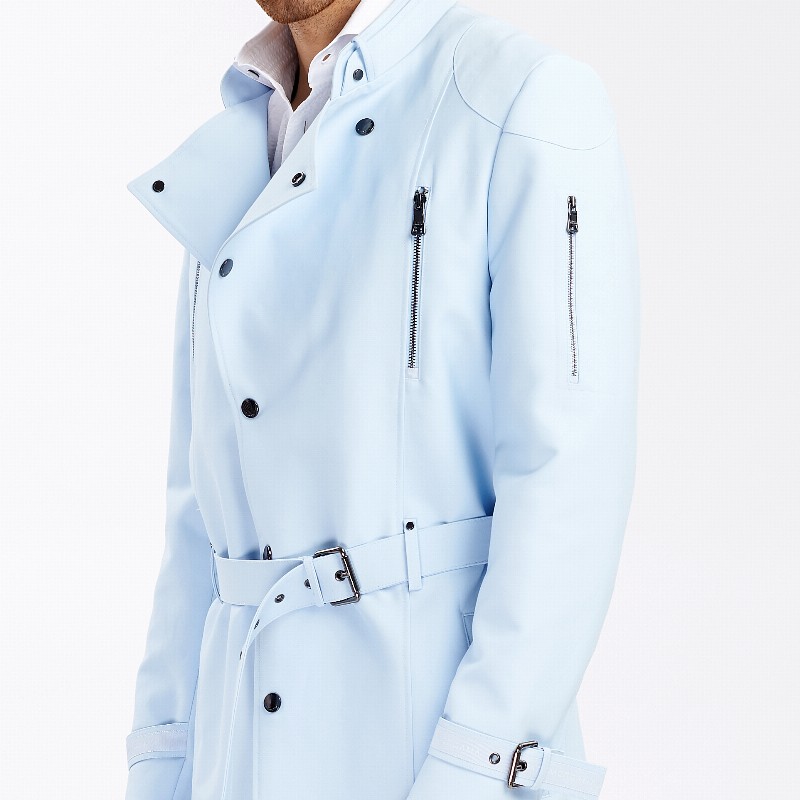 Light Blue Gabardine Studded Trench Coat 1450 € Size Select an option... 48 50 52 54 56 Qty 1 2 3 Add to cart Description This slim-fit zip pocket press stud trench coat designed with a clean-cut silhouette and rounded shoulders. The biker jacket style inspired coat is made of luxurious gabardine with tonal branded lining. Additional information Product type Coats Color Light Blue Material Cotton, Viscose Washing and caring Dryclean ONLY. Do not clean wet, bleach or tumble dry. Ironing: low temperature. Cover or remove all buttons and garment accessories before cleaning. Size and fit Fits true to size indicated by the designer on the label. SKU 2061M9819 Share