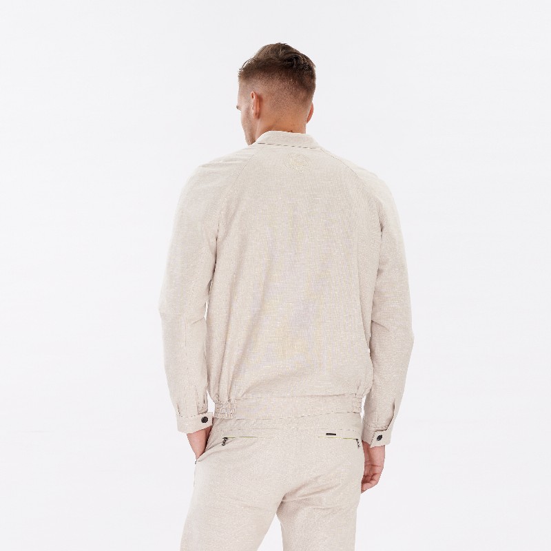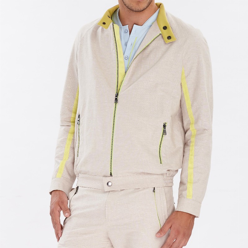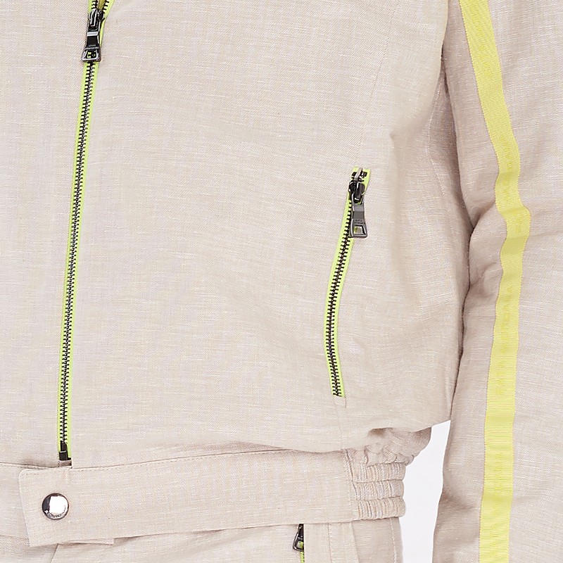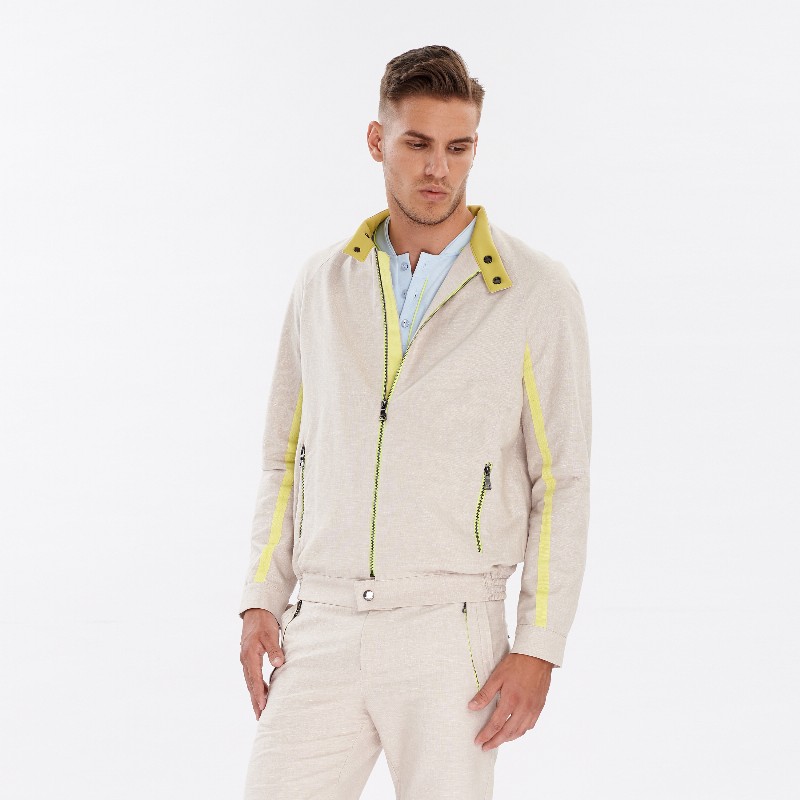 Linen Blend Sport Jacket 750 € Size Select an option... 50 52 54 56 58 Qty 1 2 Add to cart Description A modern raglan sport-jacket crafted of fine lightweight cotton-linen mélange fabric. Designed with signature FATA MORGANA logo tape embellishments on the sleeves and shiny gunmetal engraved zips, ribbing details and a press-stud neck. Additional information Product type Jackets Color Beige Material Cotton, Linen Washing and caring Specialist dryclean ONLY. Do not wash, bleach or tumble dry. Ironing: cool. Cover or remove all buttons and garment accessories before cleaning. Size and fit Fits true to size indicated by the designer on the label. SKU 2061M93110 Share