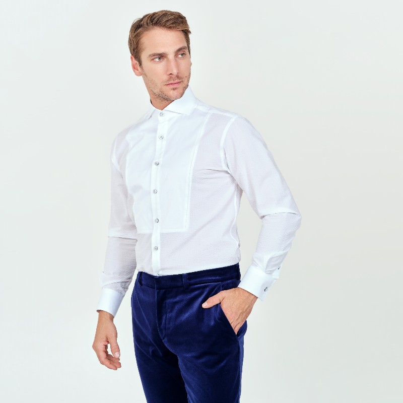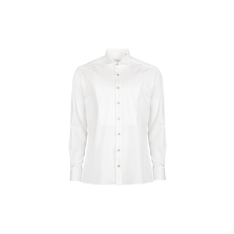 Cotton Crepe Tuxedo Shirt 170 € Size Select an option... 41 42 43 44 45 Qty 1 2 Add to cart Description A normal fit textured shirt crafted of fresh Italian made cotton crepe with tonal front ruffles. The style is finished with an embroidered tonal Logotype motif at the left cuff. Additional information Product type Shirts Color White Material Cotton Washing and caring Machine wash at 30 °C. Do not bleach, do not tumble dry. Ironing: Max 150 °C. Cover or remove all buttons and garment accessories before cleaning. Size and fit Fits true to size indicated by the designer on the label. SKU 312C1M9621 Share