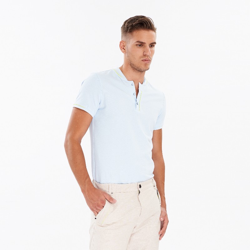 Slim Fit Cotton Polo Shirt Light Blue 110 € Size Select an option... 48 50 52 54 56 58 Qty 1 2 Add to cart Description This crew neck polo shirt made from cotton piqué jersey has a sporty casual style. The contrasting lime stripe details around the neck and sleeves with three button placket emphazize the tone in tone FATA MORGANA logo tape hidden inside. Additional information Product type T-shirts Color Light Blue Material Cotton Washing and caring Washing at 30°C.Do not bleach or tumble dry. Ironing: cool. Cover or remove all buttons and garment accessories before cleaning. Size and fit SKU 2061M9419 Share