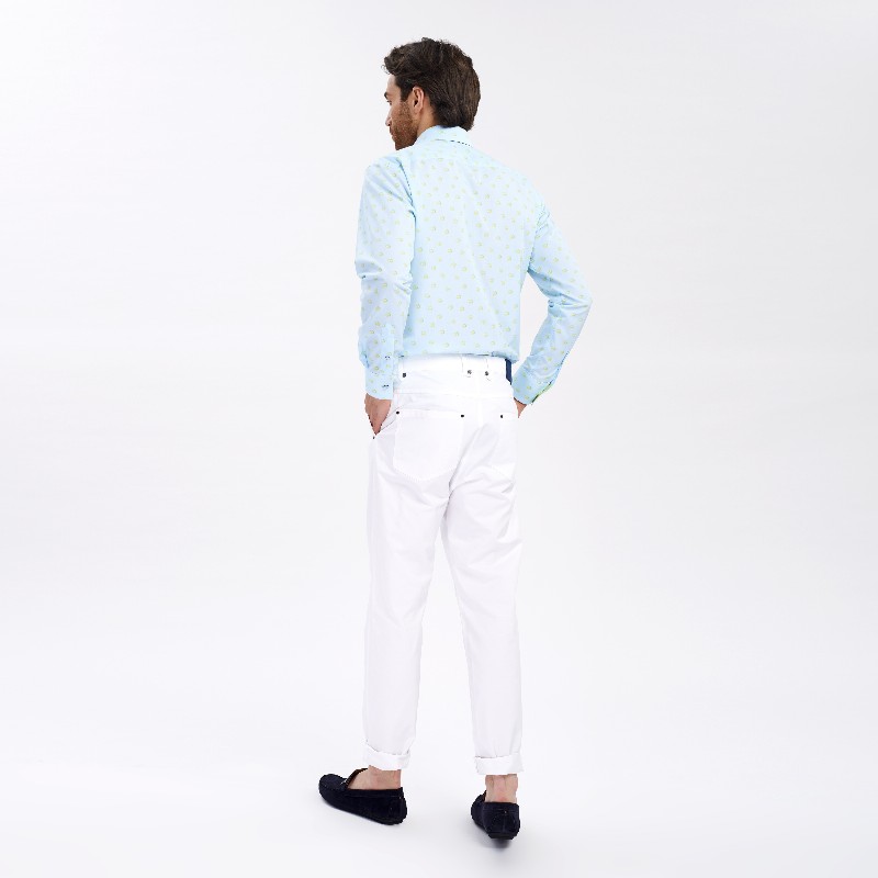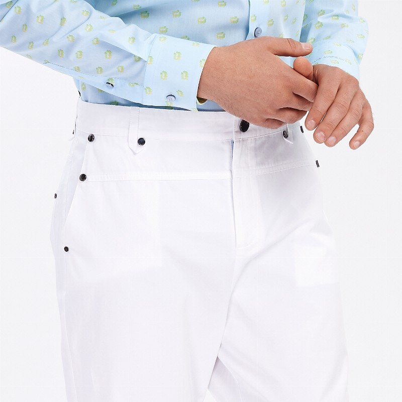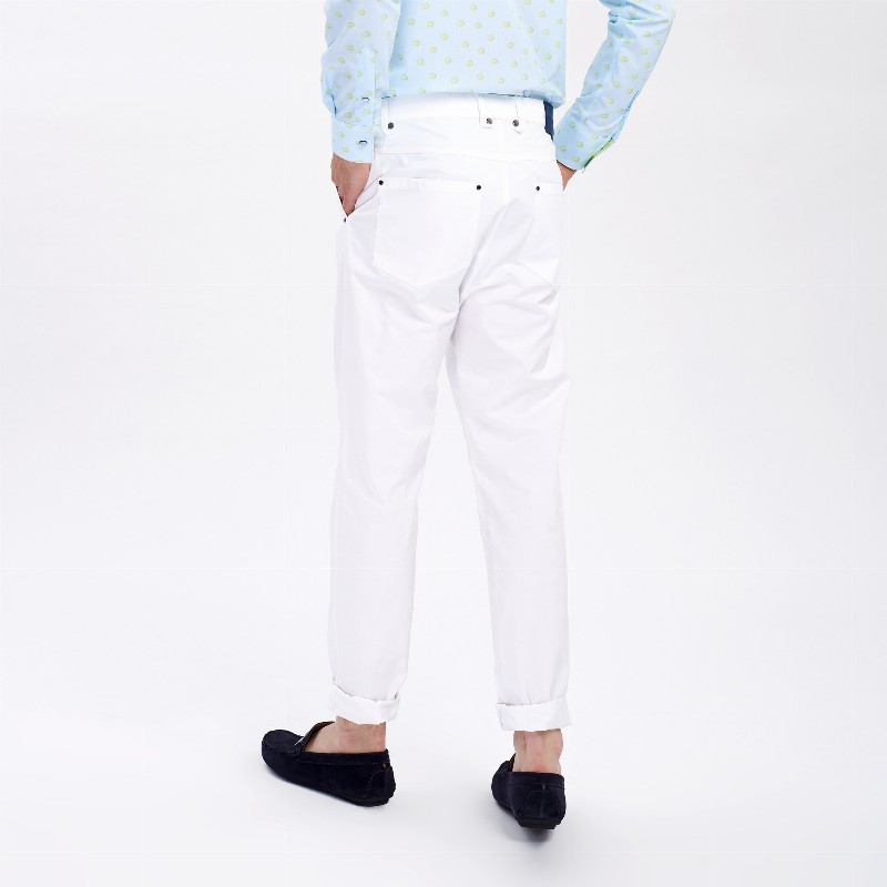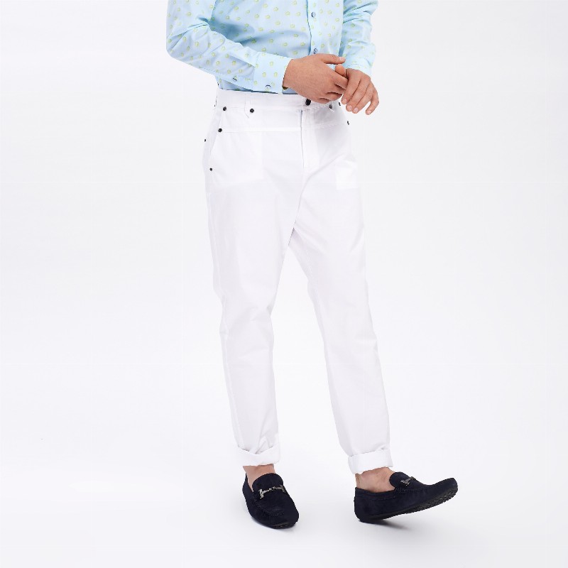 White Cotton Studded Pants 260 € Size Select an option... 50 52 54 56 58 60 Qty 1 2 Add to cart Description Crispy light cotton trousers with an all season appeal. This pure cotton breathable fabric ensures comfort, the dropped crotch style with studded details makes a casual elegant look. Additional information Product type Trousers Color White Material Cotton, Polyester Washing and caring Hand-washing and specialist dryclean ONLY. Do not bleach or tumble dry. Ironing: cool. Cover or remove all buttons and garment accessories before cleaning. Size and fit SKU 2061M9111 Share