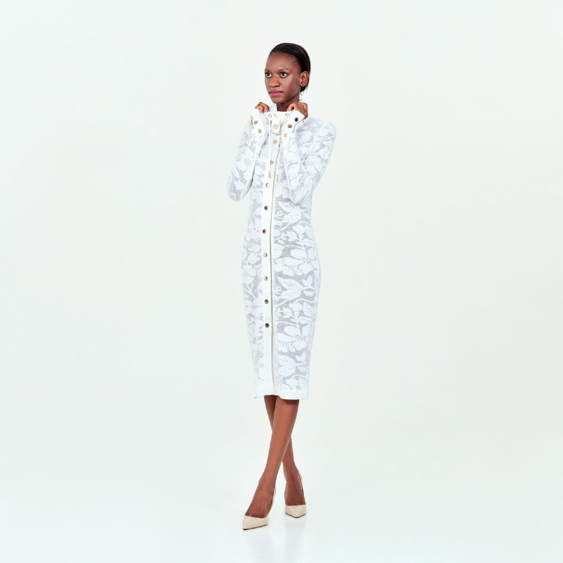 Floral Coat Dress 650 € Size Select an option... 34 36 38 40 42 Qty 1 2 Add to cart Description White, turtle-neck cotton coat dress with floral pattern, light gold front and zipped cuff. Additional information Product type Knitwear Color White Material Cotton, Viscose Washing and caring Dryclean only- Mild process. Do not bleach, do not tumble dry. Ironing: low temperature. Cover or remove all buttons and garment accessories before cleaning. Size and fit SKU 2061W120201 Share