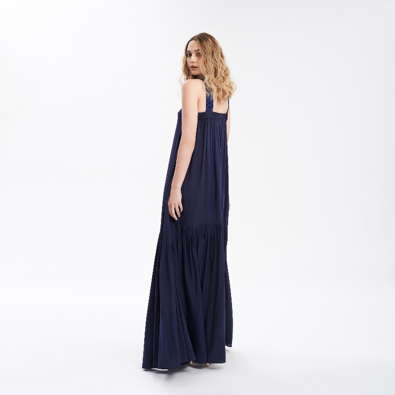 Oversize Ruffled Maxi Dress 520 € Size Select an option... 36 38 40 Qty 1 2 Add to cart Description This navy blue gathered maxi dress features a deep V neck, branded elastic straps, ruffled details, and a long length. The expressive design drapes on the body with an oversize loose fit. This simple silhouette and trans-seasonal style perfect for the modern woman on the go. Additional information Product type Dresses Color Navy Blue Material Viscose Washing and caring Only hand-washing in cold water. Do not bleach or tumble dry. Ironing: low temperature. Size and fit Slightly flexible to size indicated by the designer on the label. SKU 2061W91234 Share