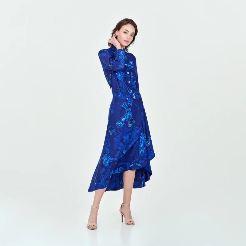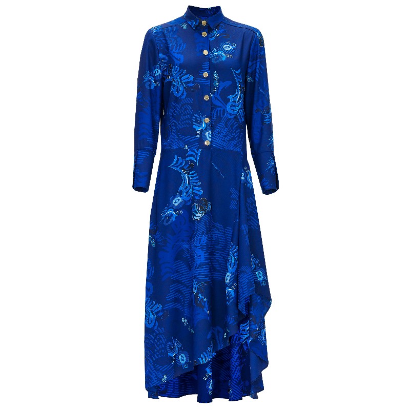 Printed Shirtdress 620 € Size Select an option... 36 38 40 42 Qty 1 2 Add to cart Description An A- line button down maxi shirt dress made of royal blue tone in tone Fata Morgana ""bone-leaf"" printed silk finished with branded shiny light gold snap buttons. Additional information Product type Dresses Color Navy Blue Material Polyester Washing and caring Hand wash, do not bleach, do not tumble dry.Ironing: low temperature.Specialist dryclean option. Cover or remove all buttons and garment accessories before cleaning. Size and fit Fits true to size indicated by the designer on the label. SKU 1091W8393 Share