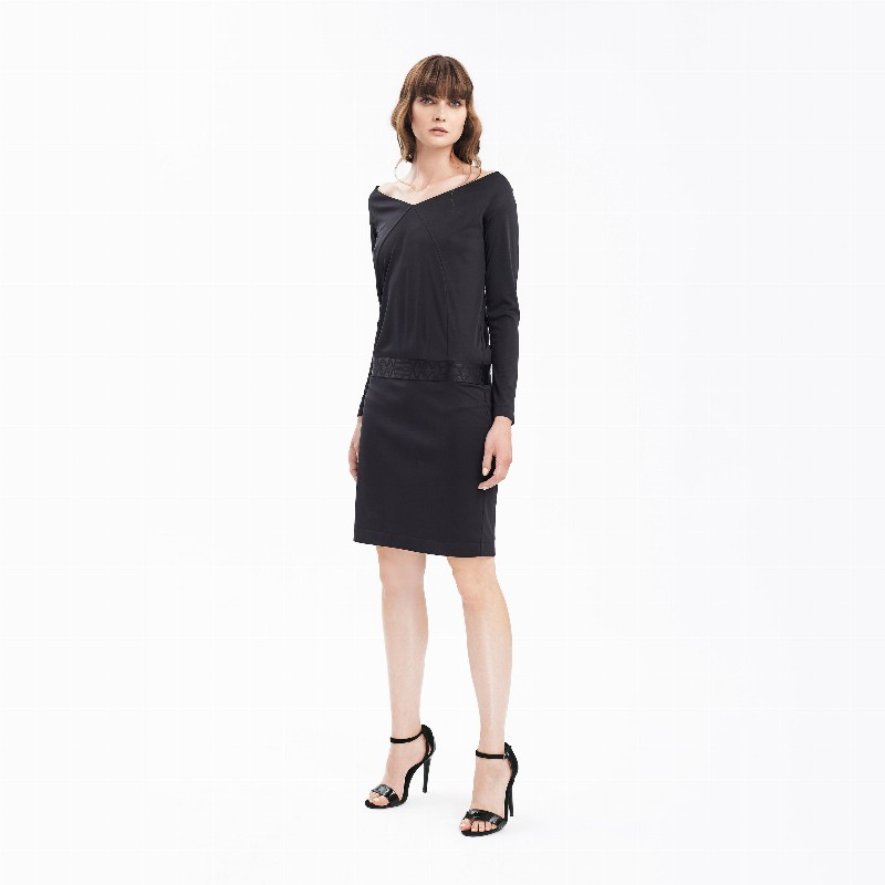 Shoulder Off Jersey Dress 480 € Size Select an option... 36 38 40 42 Qty 1 2 Add to cart Description A luxurious technical jersey, low waist dress features a shoulder-off V- neck with long sleeves, straight skirt and a tonal jacquard elastic tape belt detail. Additional information Product type Dresses Color Black Material Polyester Washing and caring Only hand-washing in cold water. Do not bleach or tumble dry. Ironing: low temperature. Size and fit Fits true to size indicated by the designer on the label. SKU 2061W9472 Share