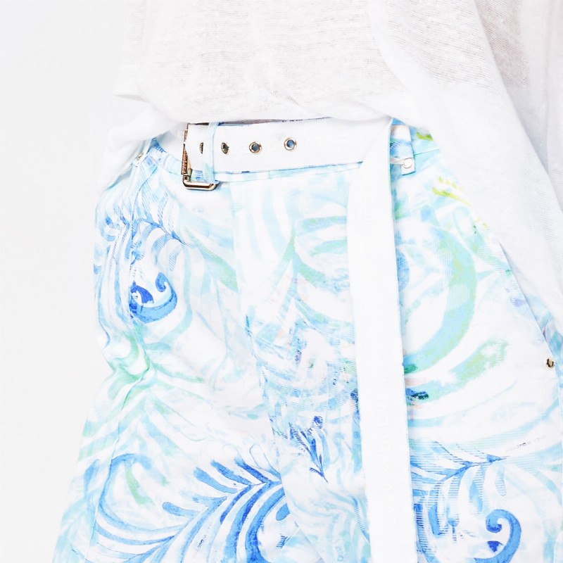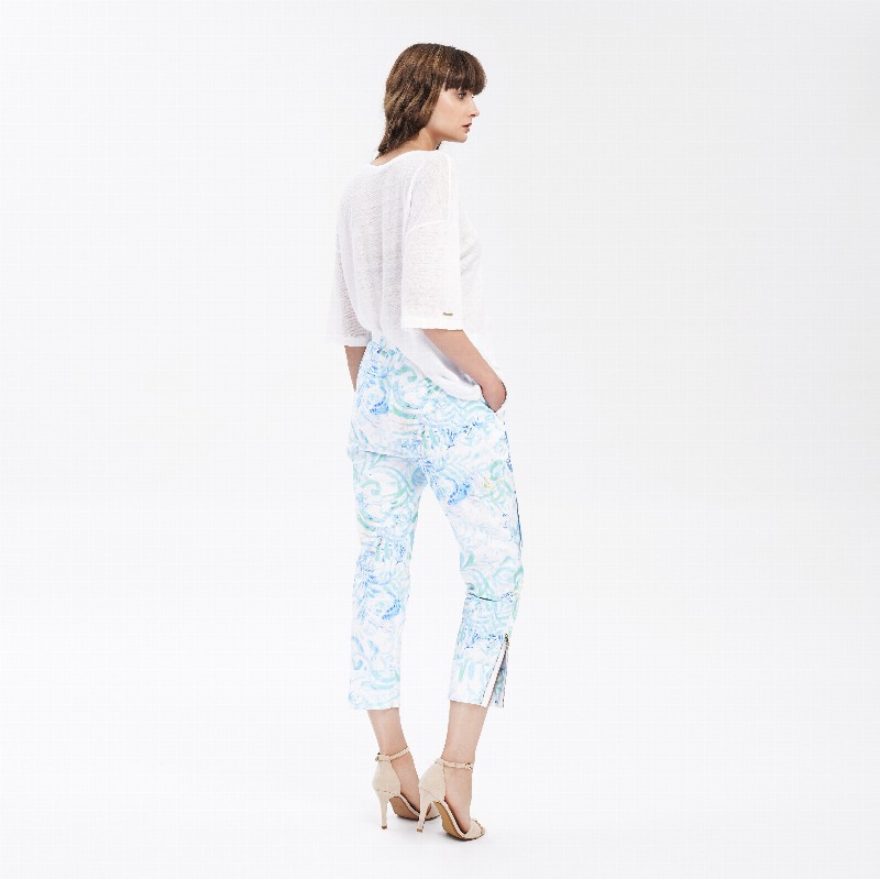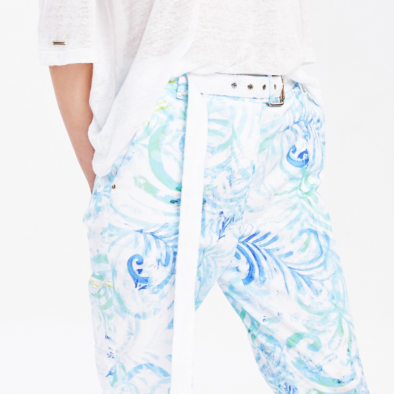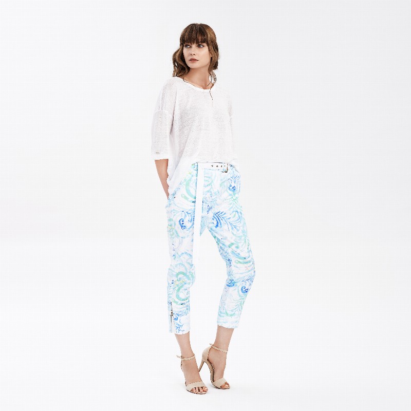 Belted Printed Cotton Pants 480 € Size Select an option... 36 38 40 42 Qty 1 2 Add to cart Description Straight leg gabardine pants with a centre front and centre back crease, hook and bar waistband closure. Branded wide tonal belt detail with logotype print. Featuring the Fata Morgana "glow-pattern" composition inspired by the hungarian folk art's heritage and the colours of lightpainting, variation of sea-blue colourway. Additional information Product type Pants Color Blue Printed Material Viscose Washing and caring Hand wash in cold water separetly- inside out. Do not bleach, do not tumble dry, professionally dry clean. ironing: Low temperature on reverse. Size and fit Fits true to size indicated by the designer on the label. SKU 2061W9133 Share