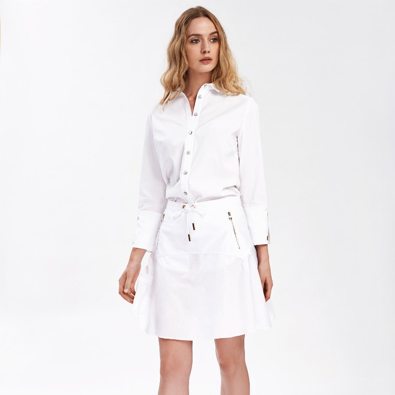 Ruffled Mini Popeline Skirt 290 € Size Select an option... 36 38 40 42 Qty 1 2 Add to cart Description This cotton skirt gets a romantic touch thanks to the gently ruffled skirt detail. The short style has a drawstring waistband, adding sporty touch to its A-line silhouette. Additional information Product type Skirts Color White Material Cotton Washing and caring Only hand-washing in cold water separately. Do not bleach, dry celan or tumble dry. Ironing: mid temperature on reverse. Size and fit SKU 2061W931 Share